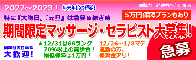 2022~2023! 年末年始の短期!期間限定マッサージ・セラピスト大募集!
