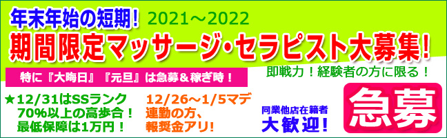2021~2022! 年末年始の短期!期間限定マッサージ・セラピスト大募集!